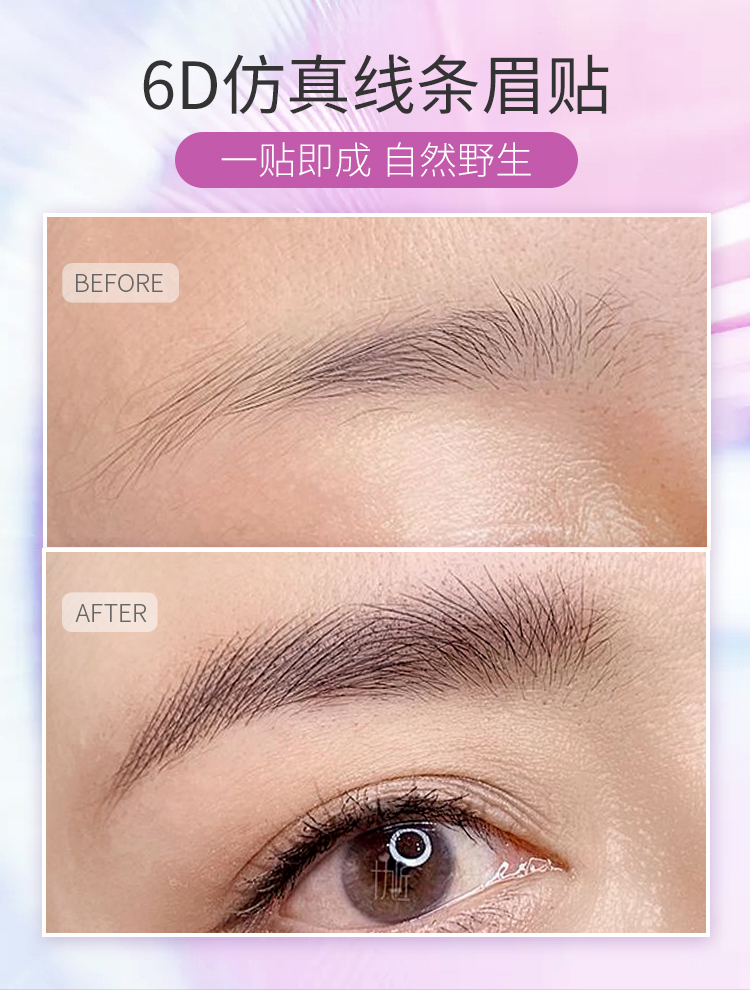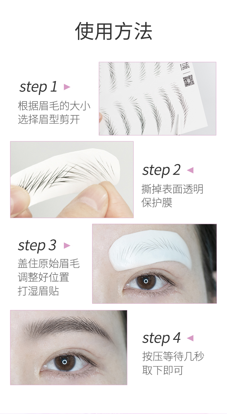 1、仿真纤细线条眉模板贴,可以直接像纹身贴一样贴附在眉毛上部分皮肤,根据模板直接在眉毛上模仿设计