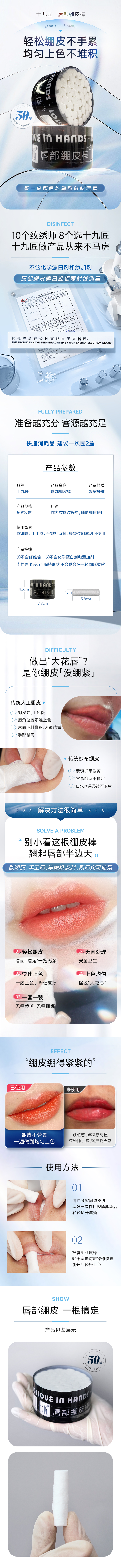 十九匠唇部绷皮棒纹唇专业棉棒垫棒绷皮神奇纹绣工具~辅助 绷皮棒(50条/盒)